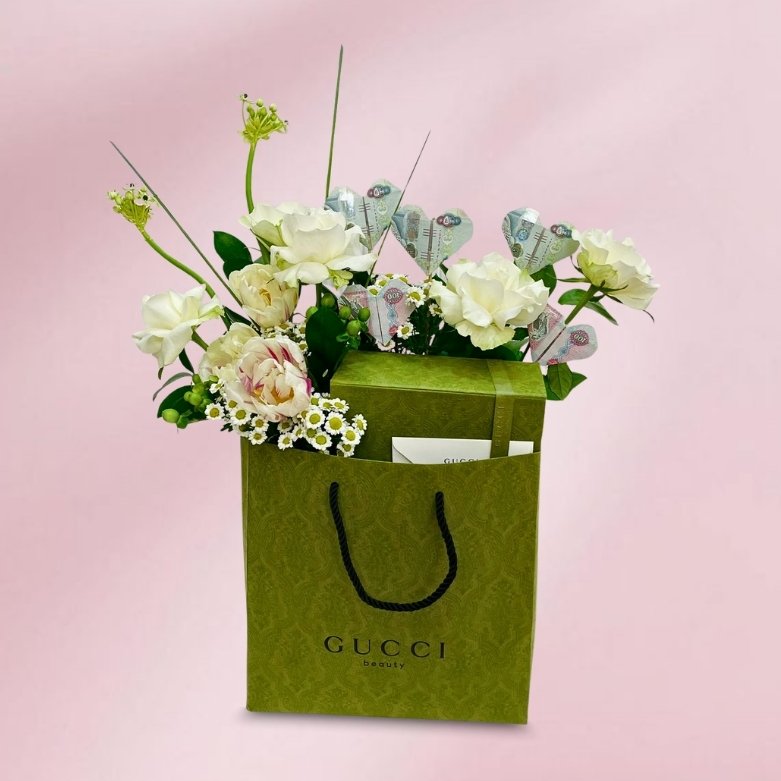 Luxury Floral Arrangement – White Roses, Tulips & Green Hypericum