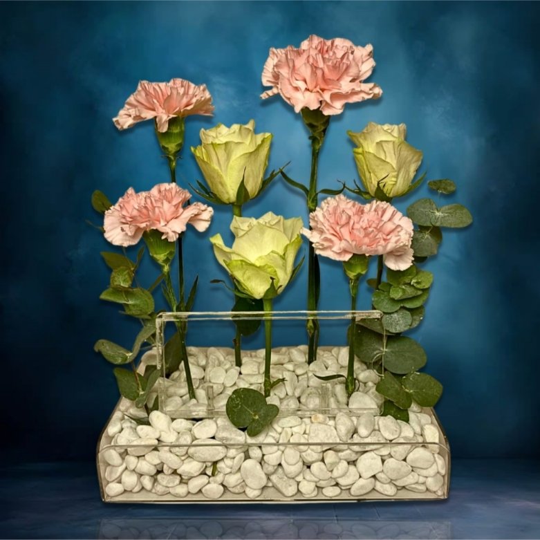 + Free ShippingThis birthday arrangement has delicate ranunculus and two-toned beige tulips all set on small acrylic tray with happy birthday topper and money acrylic.